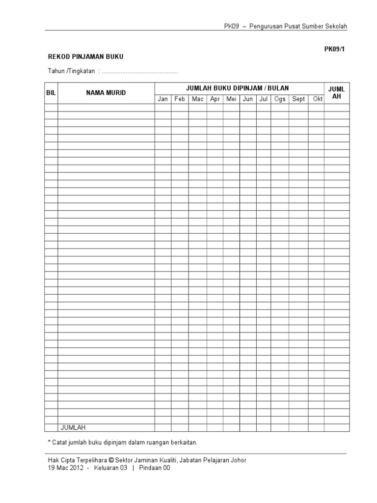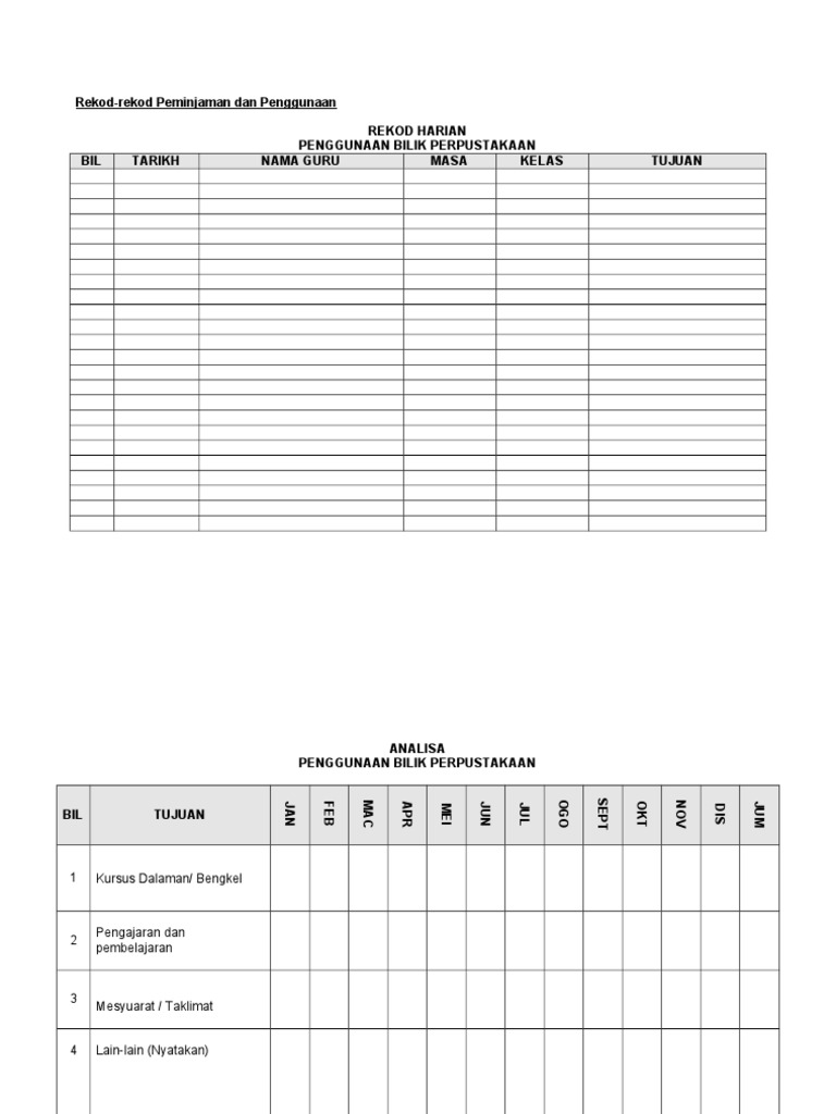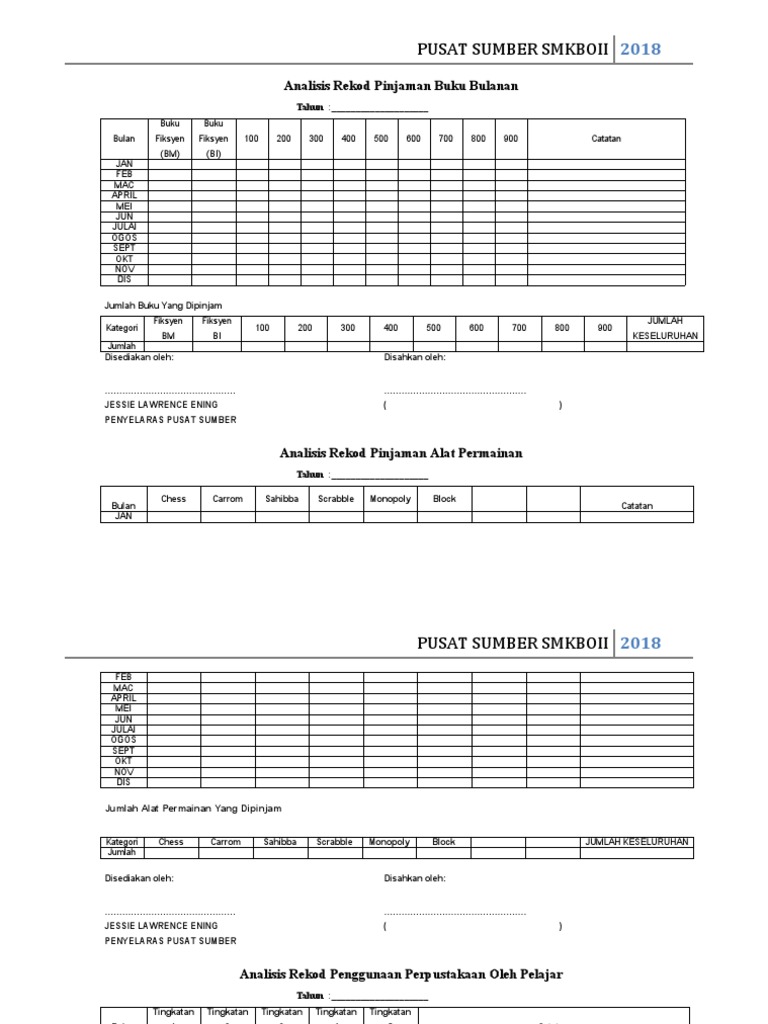 Analisis Rekod Pinjaman Buku Bulanan Pdf