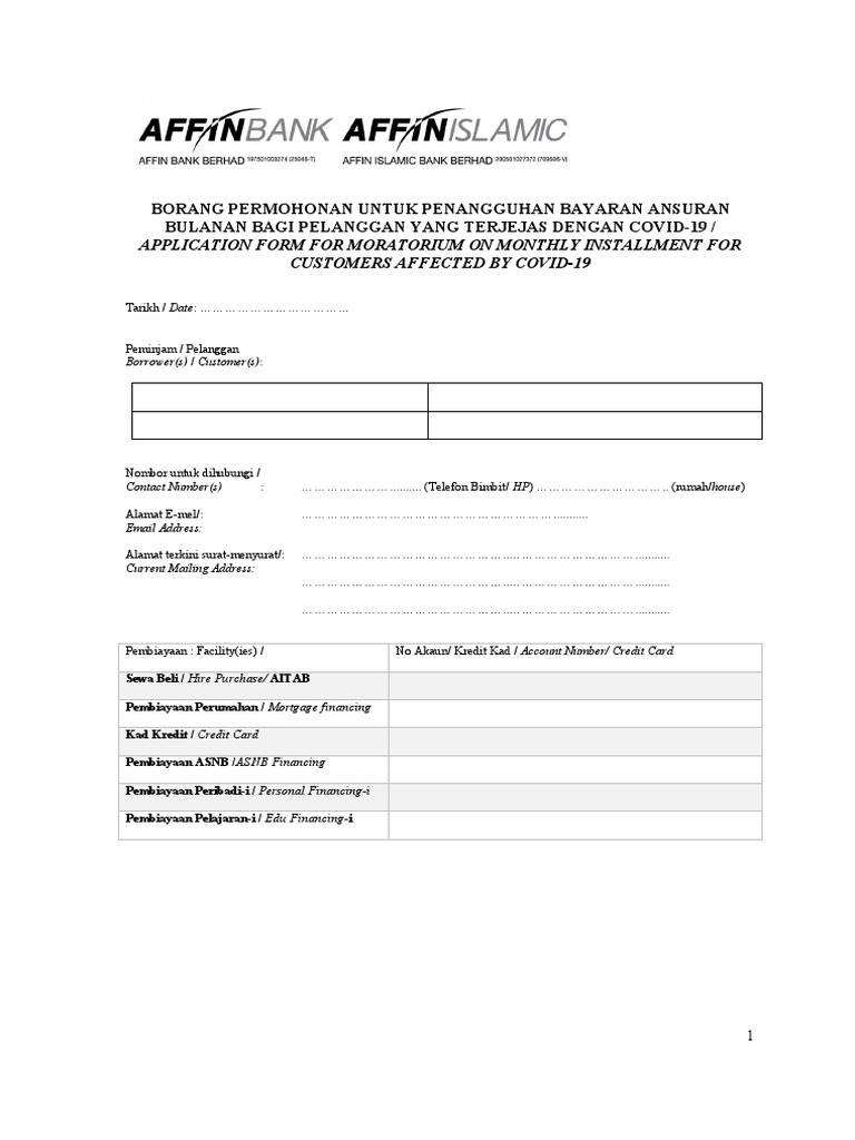 Affin Form Moratorium C19 Final 25 Feb2020 Pdf Personal Finance Liability Financial Accounting