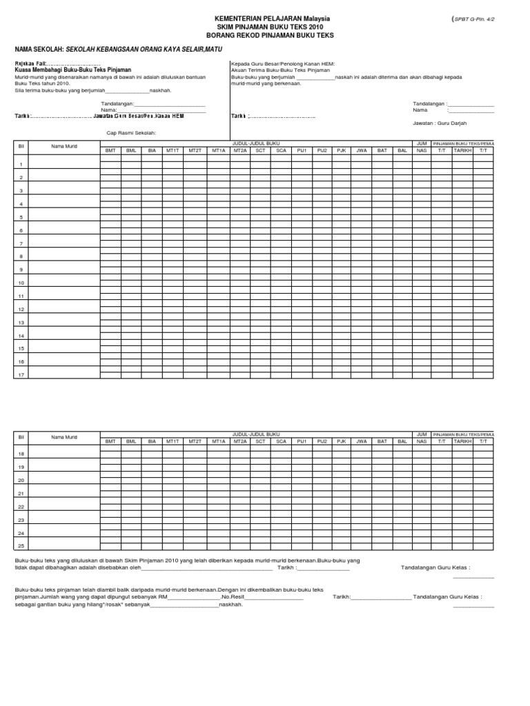 Rekod Pinjaman Murid Dan Analisis Pdf